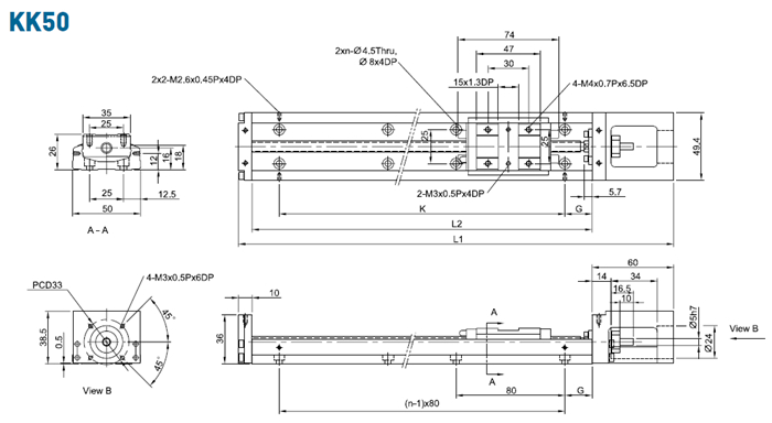 | 馬達連接法蘭 | 可將各種不同馬達鎖固于上銀KK模組之上。 |