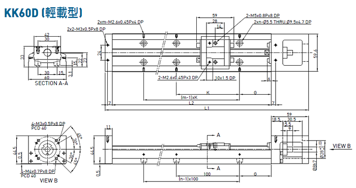 KK60D(加大頭)線性模組規(guī)格參數(shù)特點: